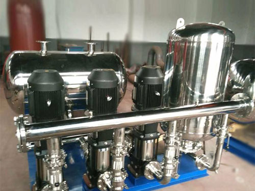 TPE系列氣壓自動給水設備由水泵機組、電控系統(tǒng)、氣壓罐、壓力控制器、閥門管路、共同底座等組成。其中,氣壓罐采用隔膜式,設備運行時氣水分離。設備運行時,要根據(jù)供水壓力向氣壓罐氣室充氣至適當值。同時整定壓力控制器上限、下限值。裝于氣壓罐表座并密封嚴。水泵運動時,向管網(wǎng)及氣壓罐膠膽內(nèi)供水。隨著膠膽內(nèi)充水量增加,氣室內(nèi)氣體被壓縮,壓力上升。當壓力升至上限值時,發(fā)信號至電控柜,停止水泵運行,由氣室內(nèi)氣體膨脹釋放膠膽水向管網(wǎng)供水。伴隨著膠膽內(nèi)水量減少,氣室氣體的膨脹,壓力逐漸降低,當壓力降至下限時,再次啟動水泵供水。如此周而復始,實現(xiàn)全自動供水。由于采用衛(wèi)生膠膽作為氣壓罐內(nèi)腔,實現(xiàn)了氣水分離式供水,有效地避免了水質(zhì)二次污染,其次氣壓罐一次充氣,長期使用,設備運行可靠,操作簡單,使用方便,故該設備適宜于水量不很大樓群、單棟住宅樓及其它場所生活供水選用。